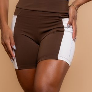 A legging possui recortes em branco nos bolsos das duas pernas, e detalhes em tramas pretas, uma combinação de cores e relevos que proporcionam